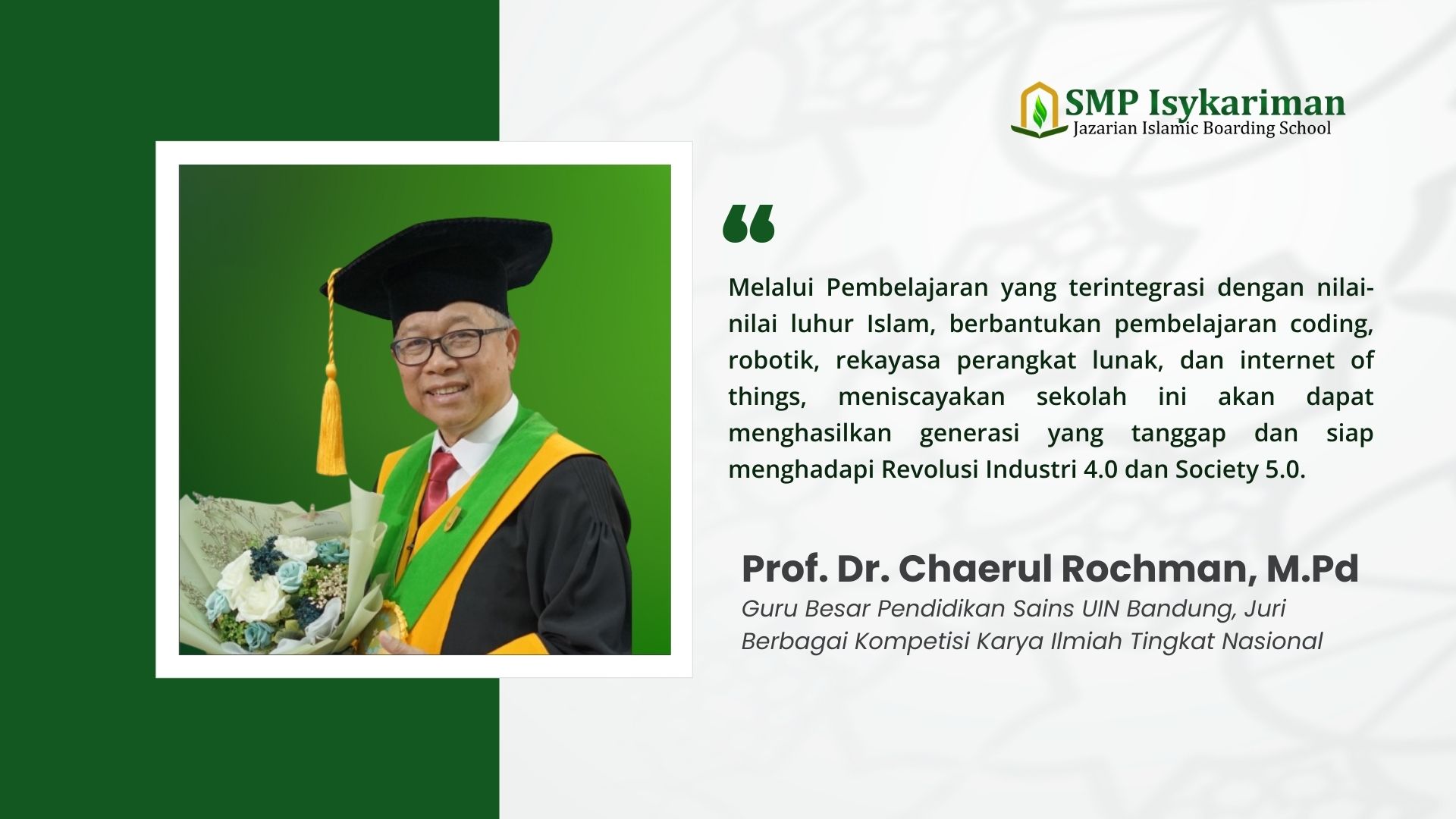 SMP Isykariman Jazarian Islamic Boarding School Bogor adalah sekolah Islam terpadu yang menyiapkan Generasi Jazarian Abad 21, generasi Qur’ani yang beradab, berilmu, dan mampu memimpin di era teknologi. Berlandaskan Al-Qur’an dan nilai Islam yang autentik, kami memadukan pembinaan akhlak dengan penguasaan sains dan teknologi modern, termasuk coding, robotika, dan kecerdasan buatan.